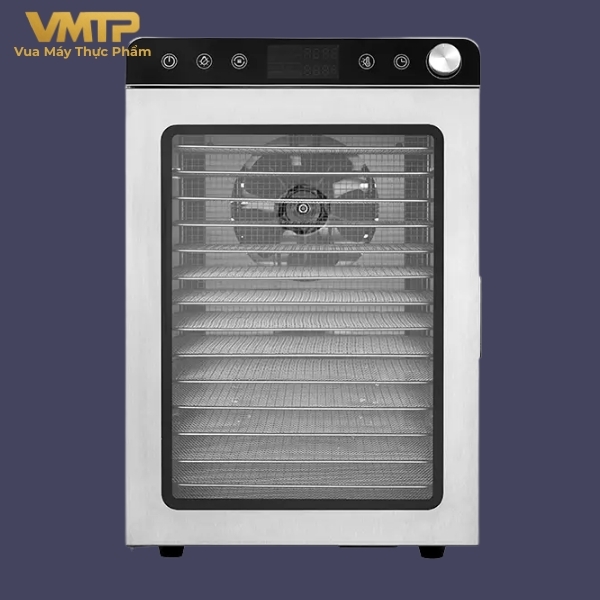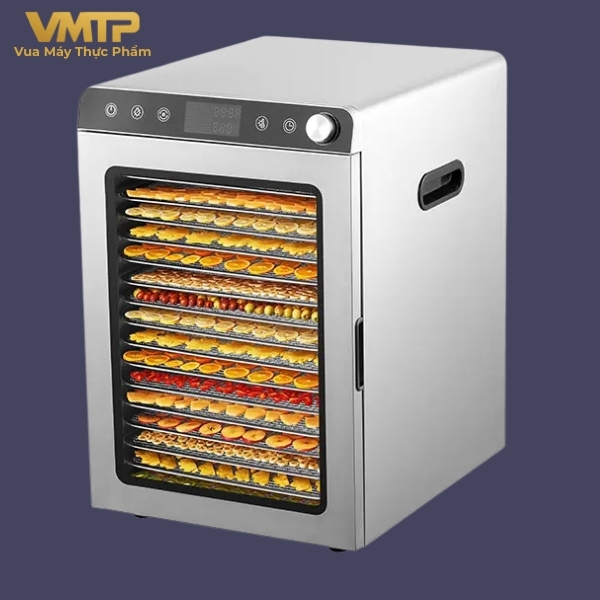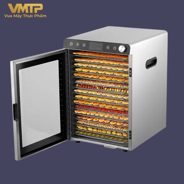Với 16 khay sấy, máy cho phép xử lý lượng lớn thực phẩm trong một lần, phù hợp cho cơ sở sản xuất và kinh doanh.
