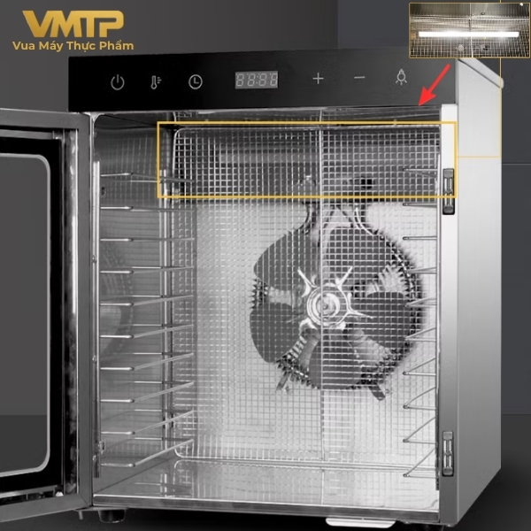 Đèn LED tích hợp giúp quan sát rõ hơn trong quá trình sấy, đặc biệt trong môi trường thiếu sáng.