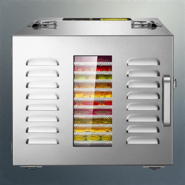 Với 10 khay inox 304, máy cho không gian sấy lớn (2455,49in²) để xử lý cùng lúc nhiều nguyên liệu khác nhau, từ trái cây đến thịt jerky và snack gia đình.