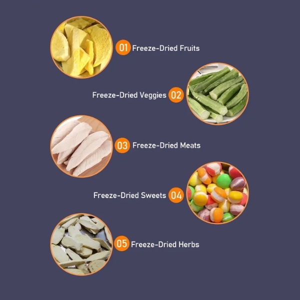 | Ứng dụng | Sấy thăng hoa trái cây, thực phẩm cao cấp, dược liệu |